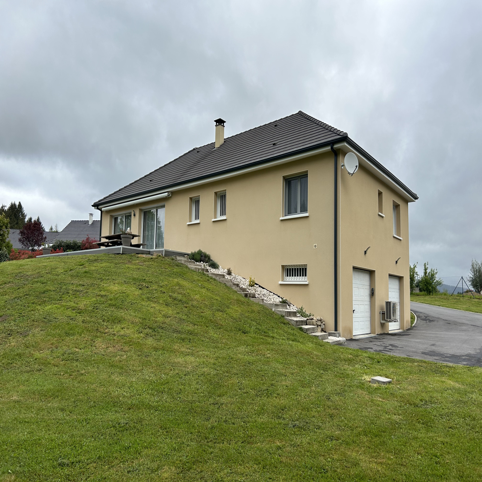 EXCLUSIVITÉ IMMO19.FR / Une maison d'habitation de plain-pied comprenant une pièce à vivre avec cuisine ouverte aménagée et équipée, trois chambres dont une suite parentale avec dressing et salle d'eau, un bureau, une salle de bain et un cellier. De plus, un sous-sol de 135m2 avec accès à l'étage offrant un double garage avec accès goudronné. Le tout sur un terrain clos d'environ 2346 m2 avec source.
