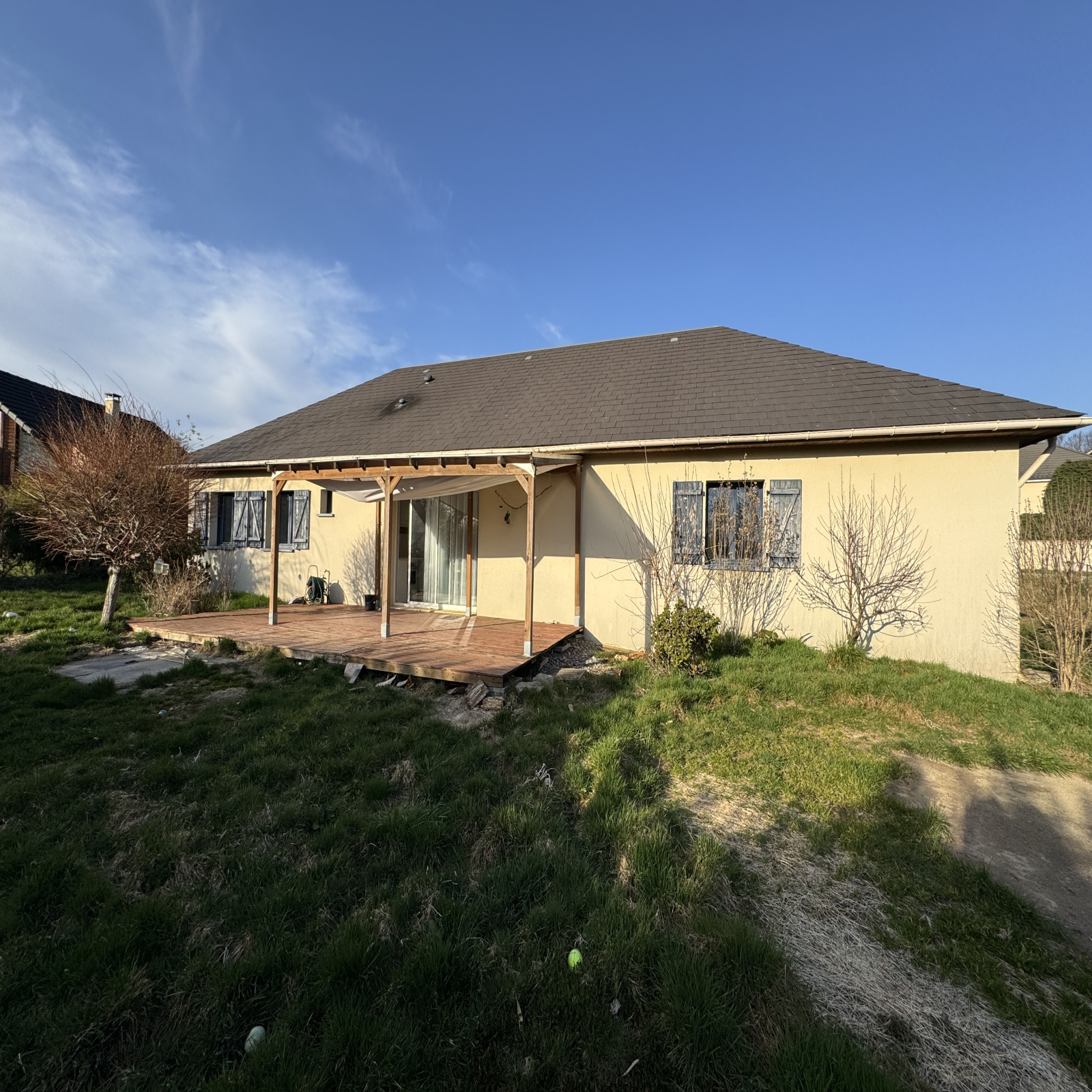 EXCLUSIVITÉ IMMODU19.FR / À seulement 10 minutes d'Ussel, cette maison de plain-pied offre un salon-séjour avec cuisine ouverte, quatre chambres avec placards, une salle d'eau équipée d'une baignoire et d'une douche, ainsi qu'un WC indépendant. Le bien dispose également d'un garage d'environ 22m2. L'ensemble sur un terrain clos de 1100m2.