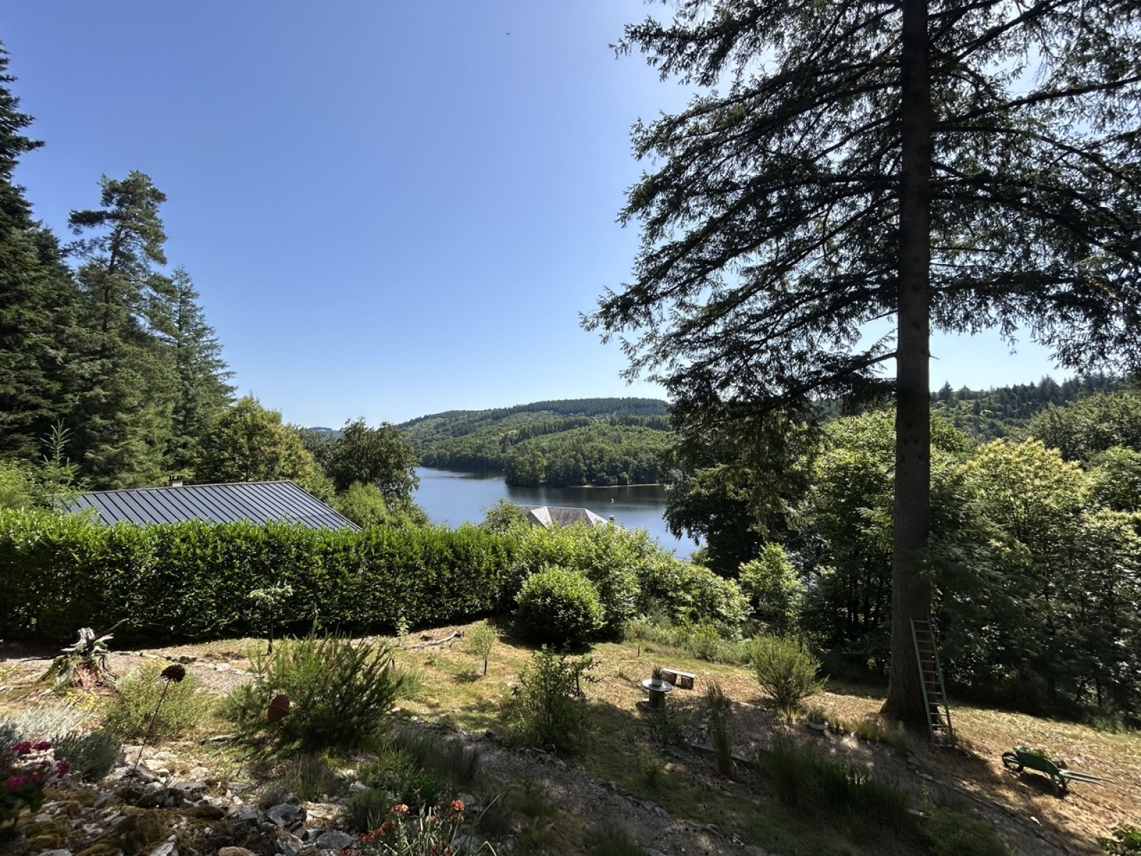 EXCLUSIVITÉ IMMODU19.FR / Entre le Massif des Monédières et le Plateau de Millevaches, ce chalet avec une vue exceptionnelle sur le Lac des Bariousses comprend une cuisine ouverte sur le salon, une chambre avec placard et une salle d'eau avec wc. De plus une terrasse couverte et un cabanon attenant à la maison.