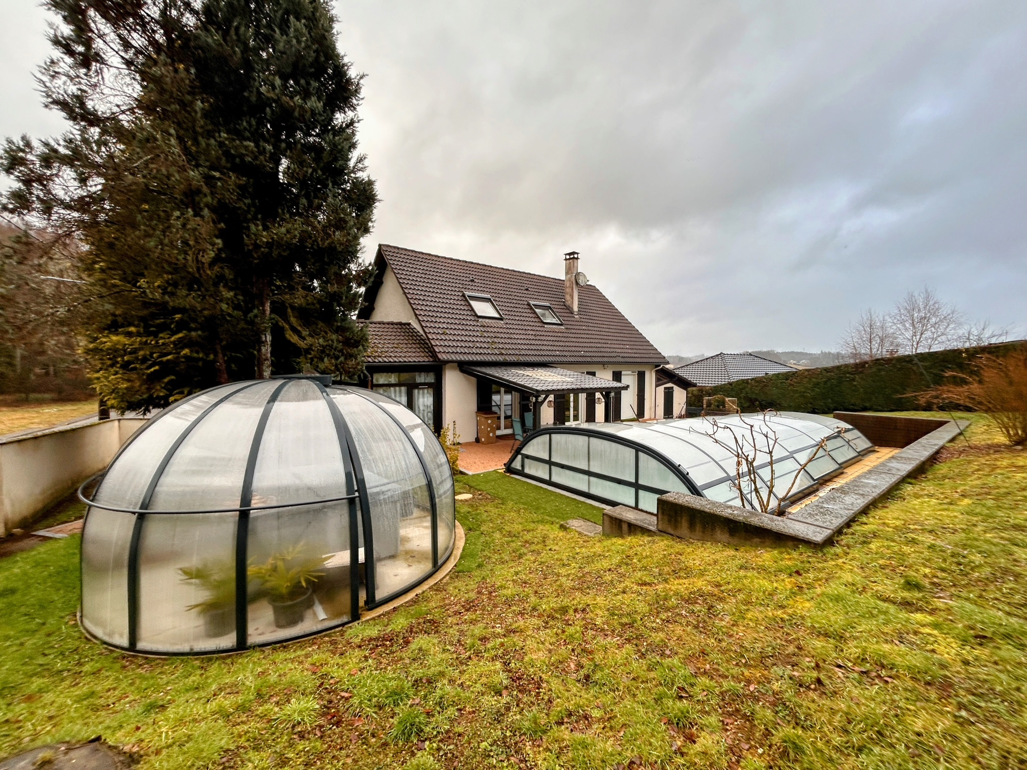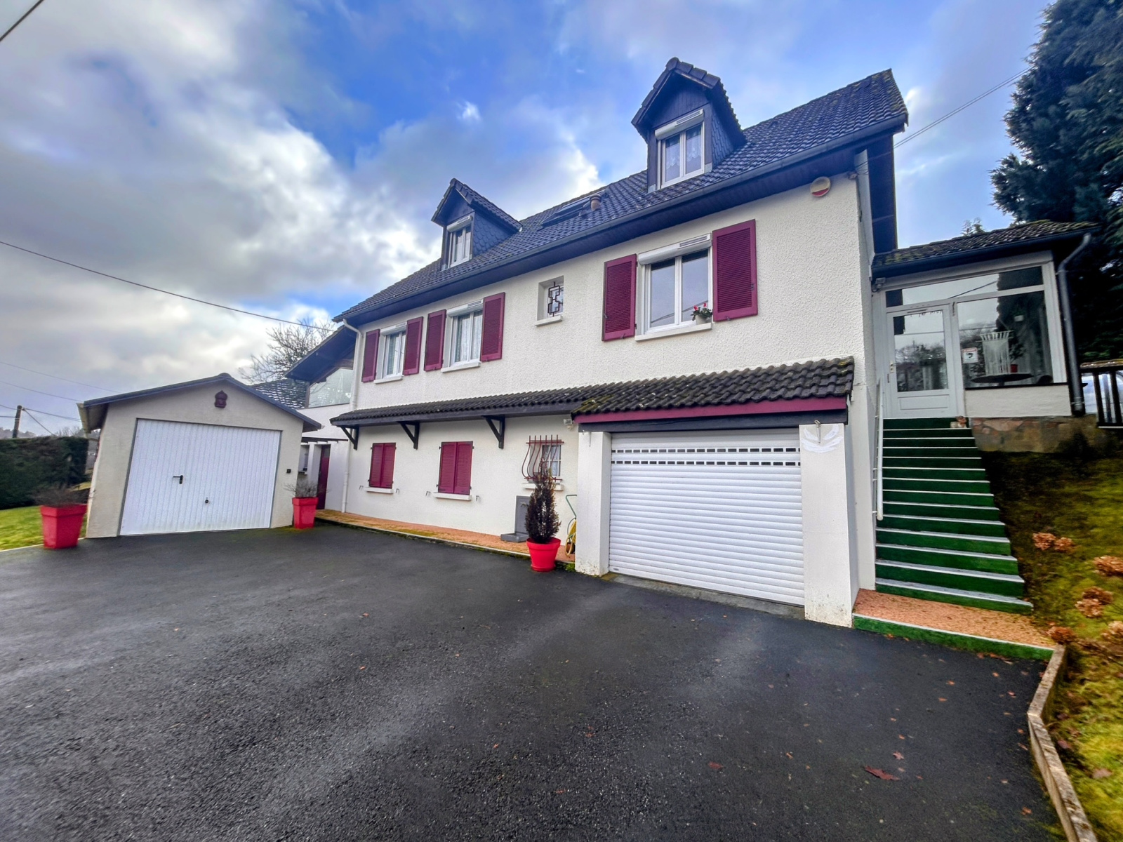 Maison des années 70, située à proximité du centre-ville et de ses commodités. Ce bien est élevé sur un sous-sol d'environ 100 m2 à usage de garage, chaufferie et cave. En rez-de-jardin, cette maison est composée d'une veranda, d'une cuisine séparée, aménagée et équipée, d'une lumineuse pièce à vivre avec accès à la terrasse partiellement couverte, un bureau et une deuxième veranda, d'une chambres et d'une salle de bains avec WC. L'étage comprend un palier desservant deux autres chambres, un bureau et une salle d'eau avec WC. Le tout sur un terrain clos d'environ 950 m2 avec une piscine et SPA de 2022, Le bien dispose également d'un deuxieme garage non attenant de 30 m2.