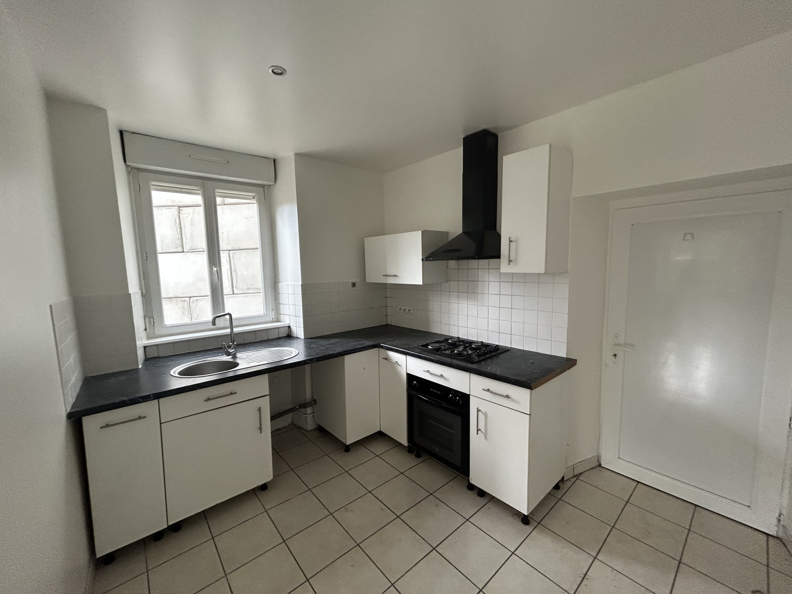 Au premier étage, un appartement entièrement refait à neuf d’environ 75 m². Il se compose d’une entrée avec couloir, d’une cuisine ouverte sur le séjour avec accès à une terrasse, de trois chambres, d’une salle d’eau et d’un WC séparé. Ce logement est loué 640 €/mois.
