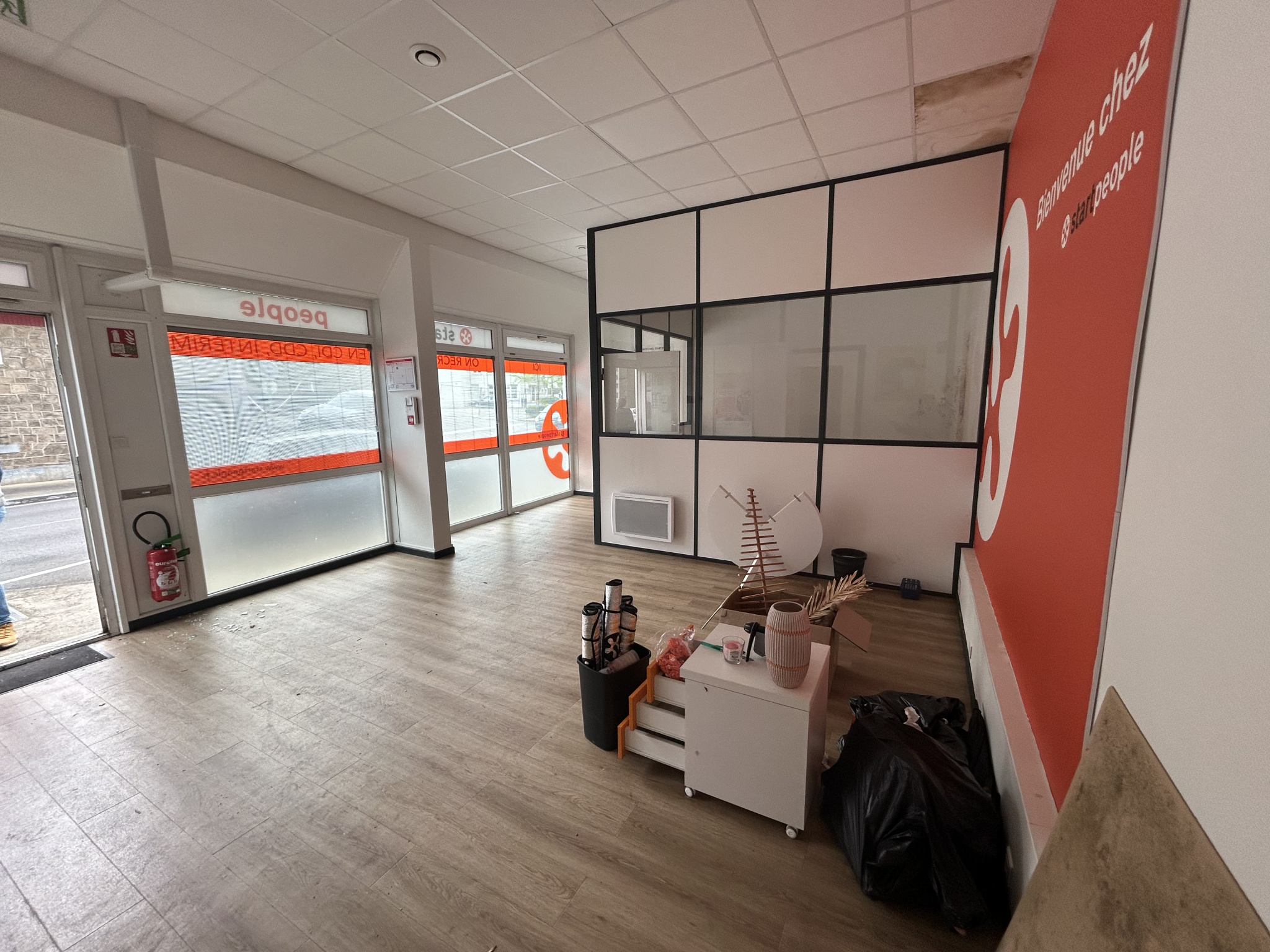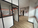 Au rez-de-chaussée, un local commercial d’environ 40 m² comprenant une pièce d’accueil clients, un bureau, une kitchenette et un WC, loué