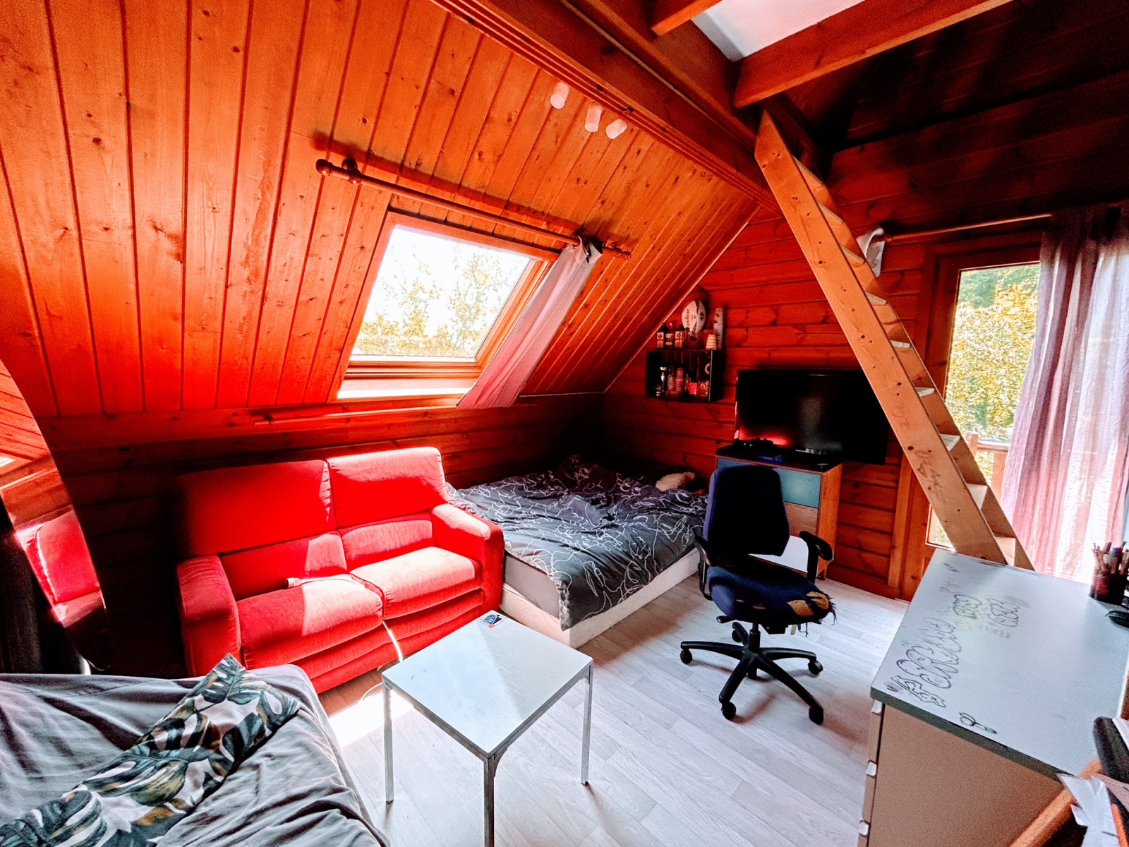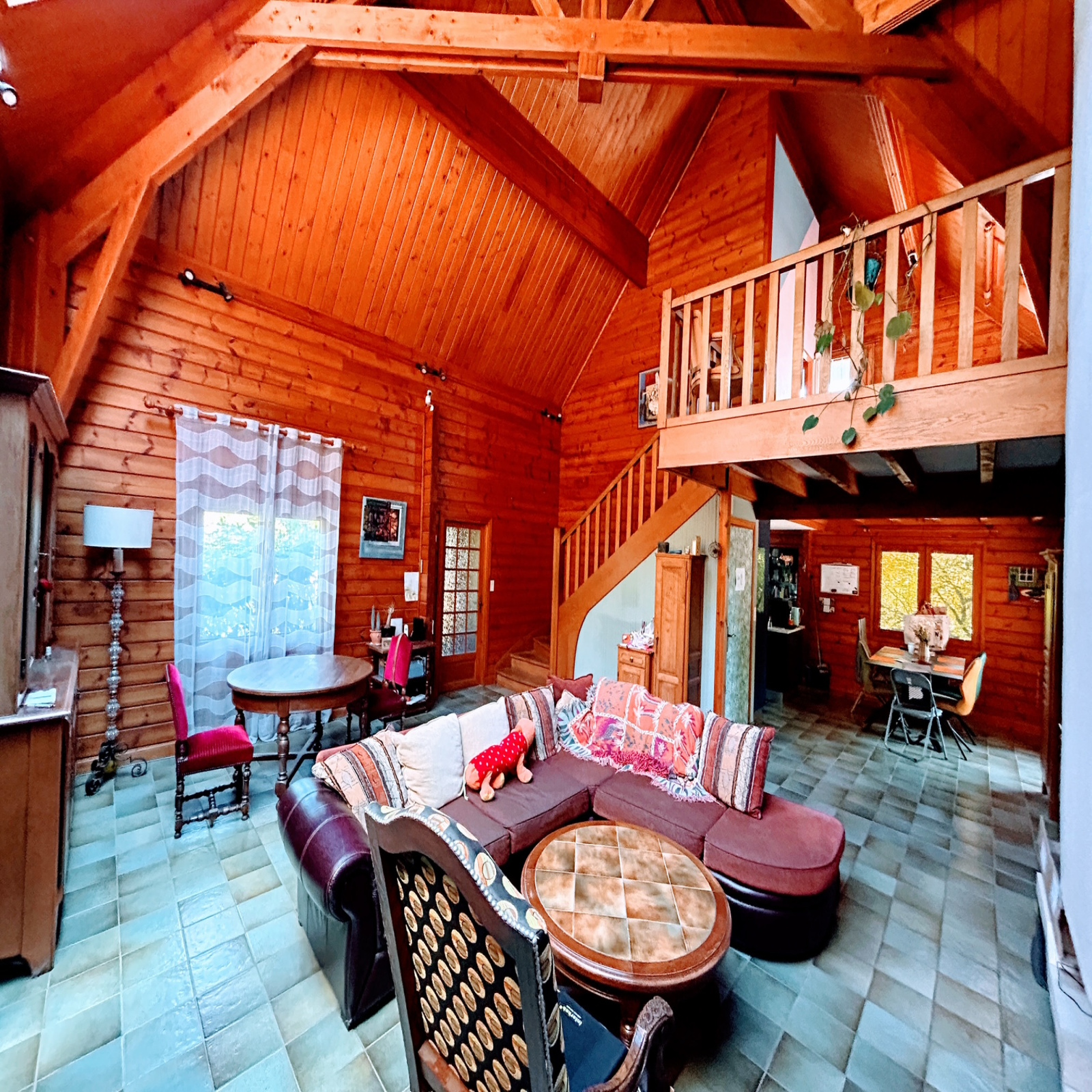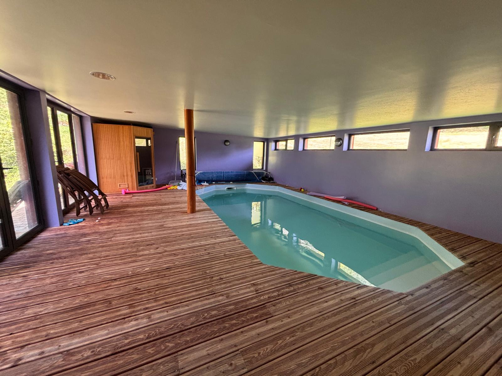 IMMODU19.FR / Chalet situé sur les exterieurs d'Ussel à 5minutes de toutes les commodités, il se compose d'une pièce de vie ouverte sur la cuisine, deux chambres dont une suite parentale, une salle d'eau, un espace piscine interieur. A l'étage une mezzanine dessert quatre chambres, une salle d'eau et une salle de bain.