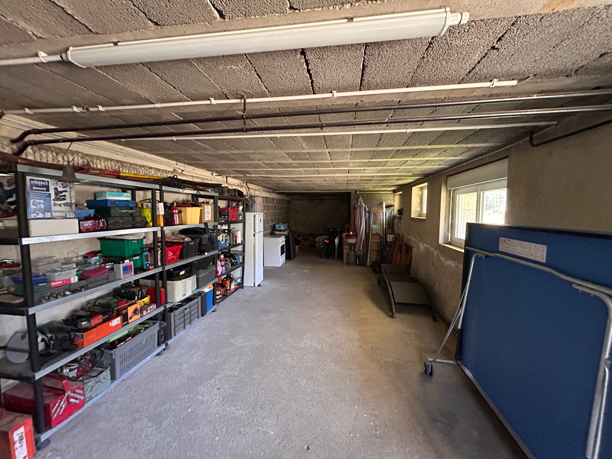À l'étage, les combles aménagés d'environ 115 m2 offrent un espace supplémentaire, utilisés en espace salle de jeux et atelier.