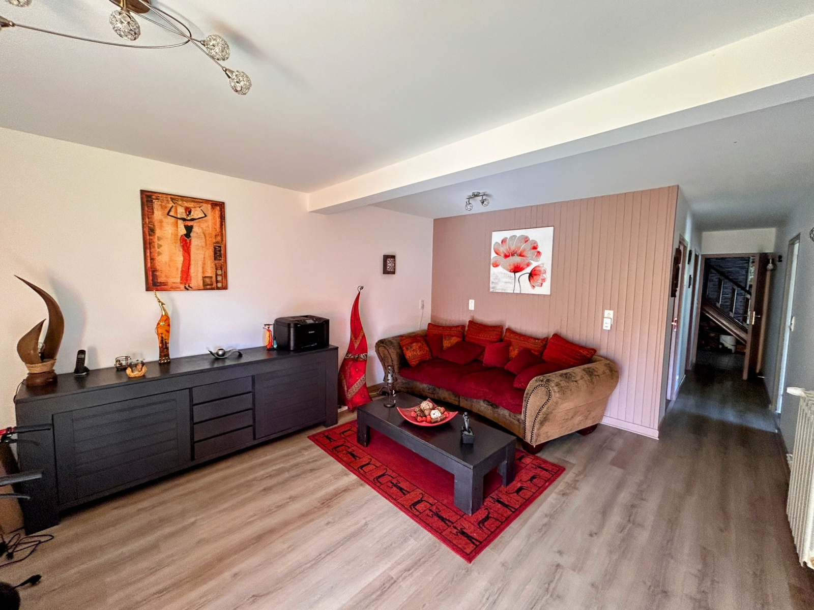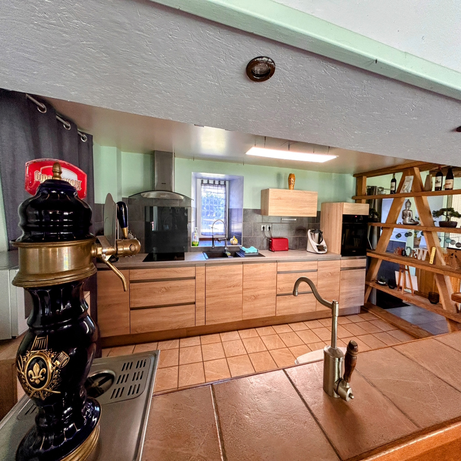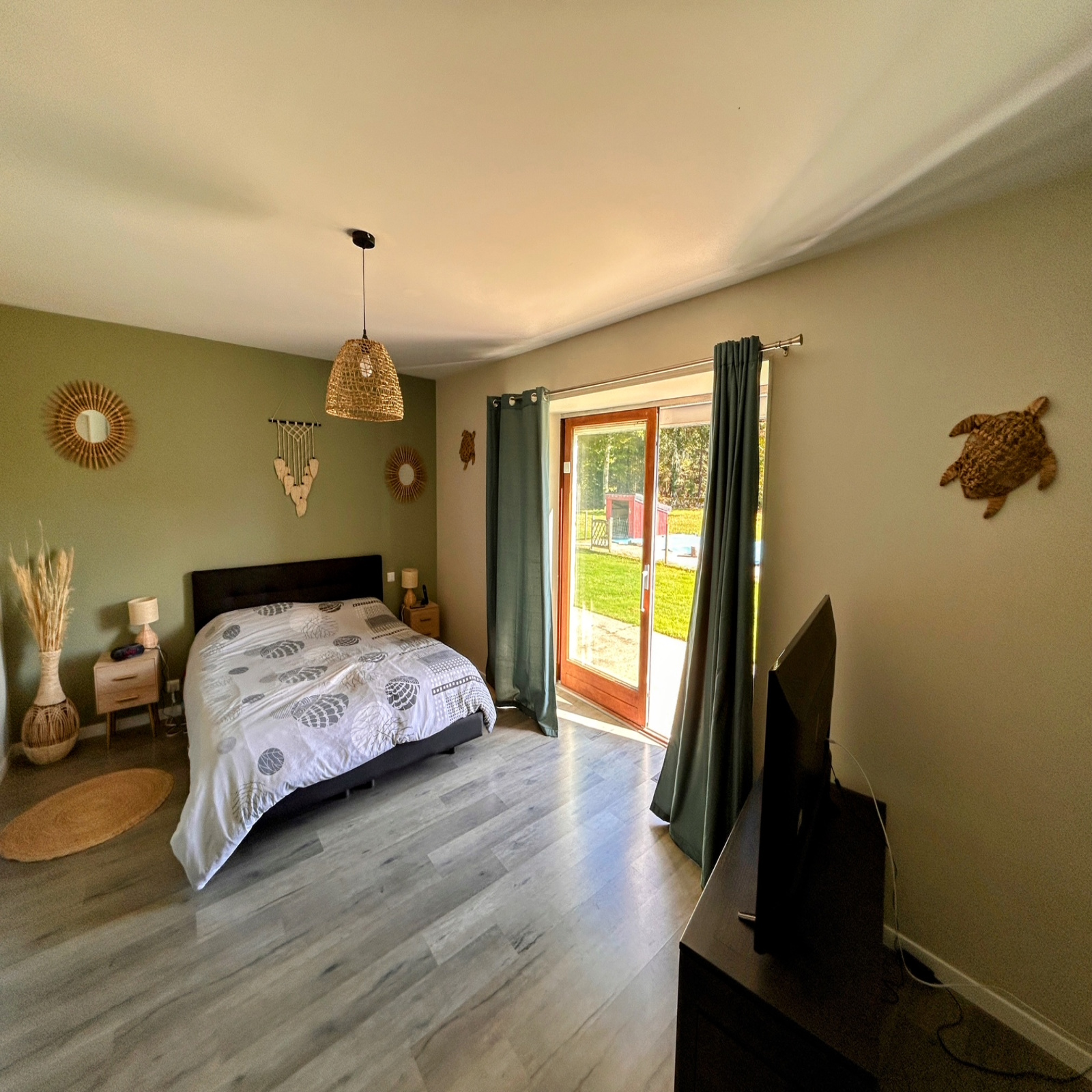 En rez-de-chaussée, elle se compose d'une pièce de vie de plus de 57 m2 ouverte sur une cuisine entièrement équipée, une salle d'eau avec WC, deux chambres ouvertes sur l'extérieur, un salon et une buanderie.