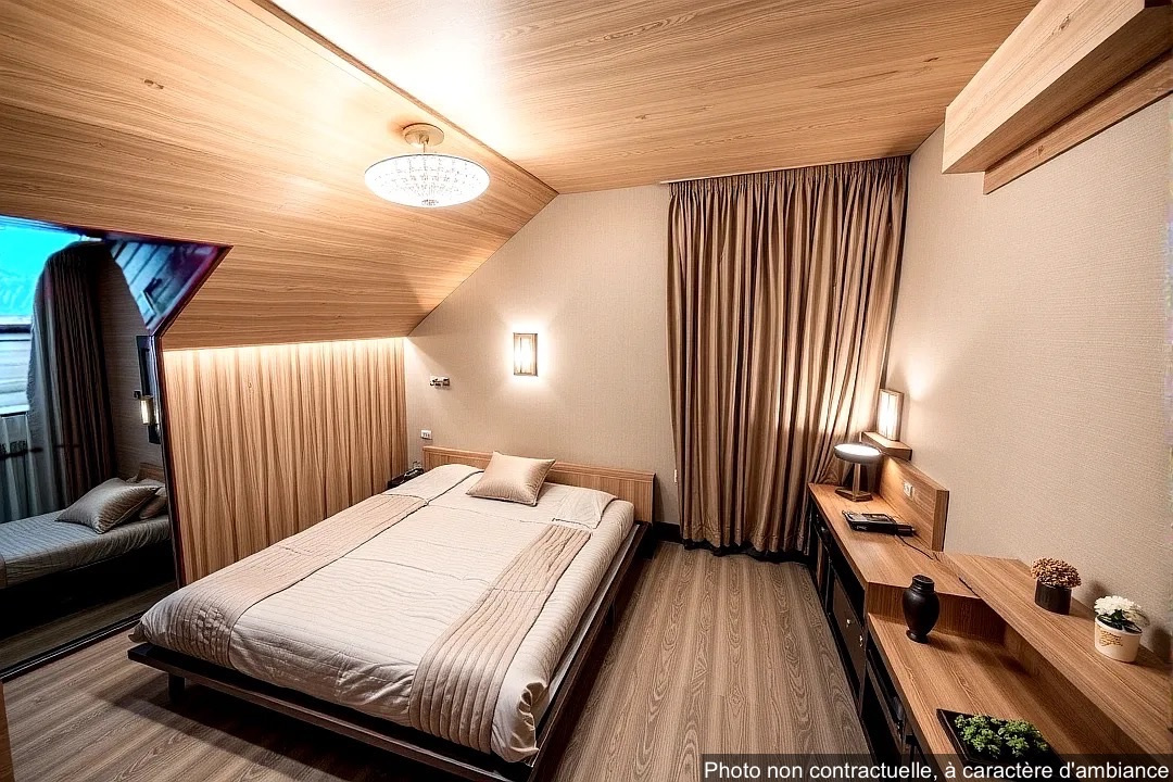 Le dernier étage avec climatisation réversible est composé de deux chambres, un bureau, une salle d'eau et un WC.