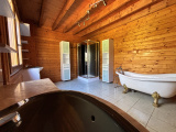 Dès l’entrée, les volumes généreux et la lumière naturelle créent une atmosphère chaleureuse et accueillante. Les espaces de vie, pensés pour le partage, invitent à des instants privilégiés en famille ou entre amis, autour d’un feu de cheminée par exemple. La suite parentale intimiste, offre un véritable espace personel avec sa chambre, son dressing et salle de bain avec douche, baignoire et double vasque. .