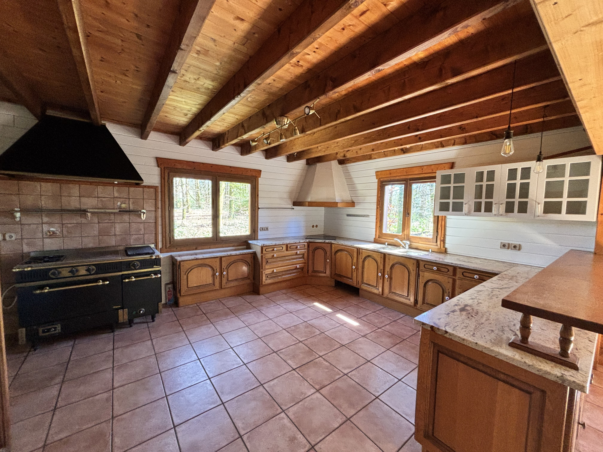 Côté confort, la propriété bénéficie d’équipements modernes : pompe à chaleur, climatisation réversible, assainissement collectif et toiture en ardoise de pays.