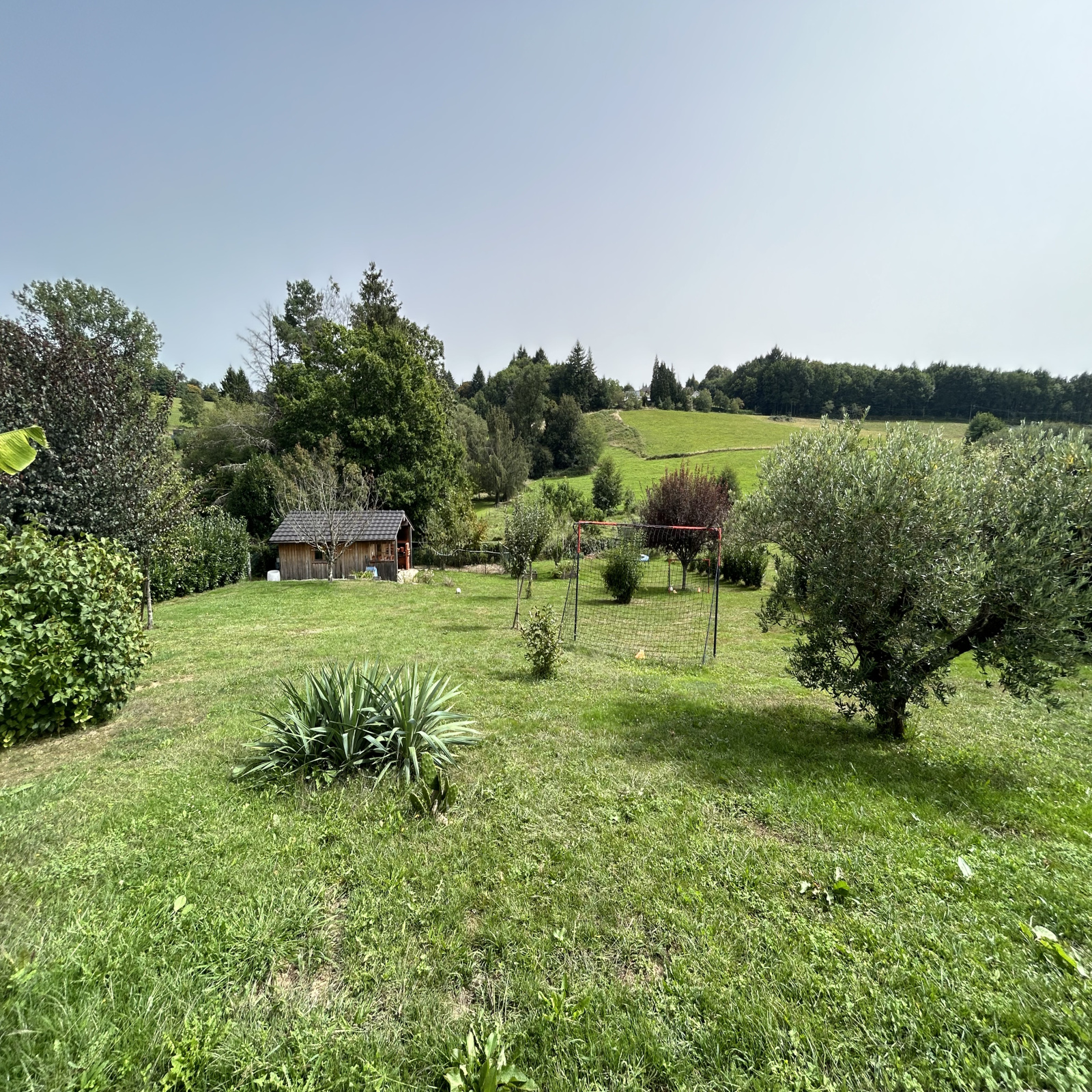 Jardin arboré, cloturé. Abri bois de type chalet.
