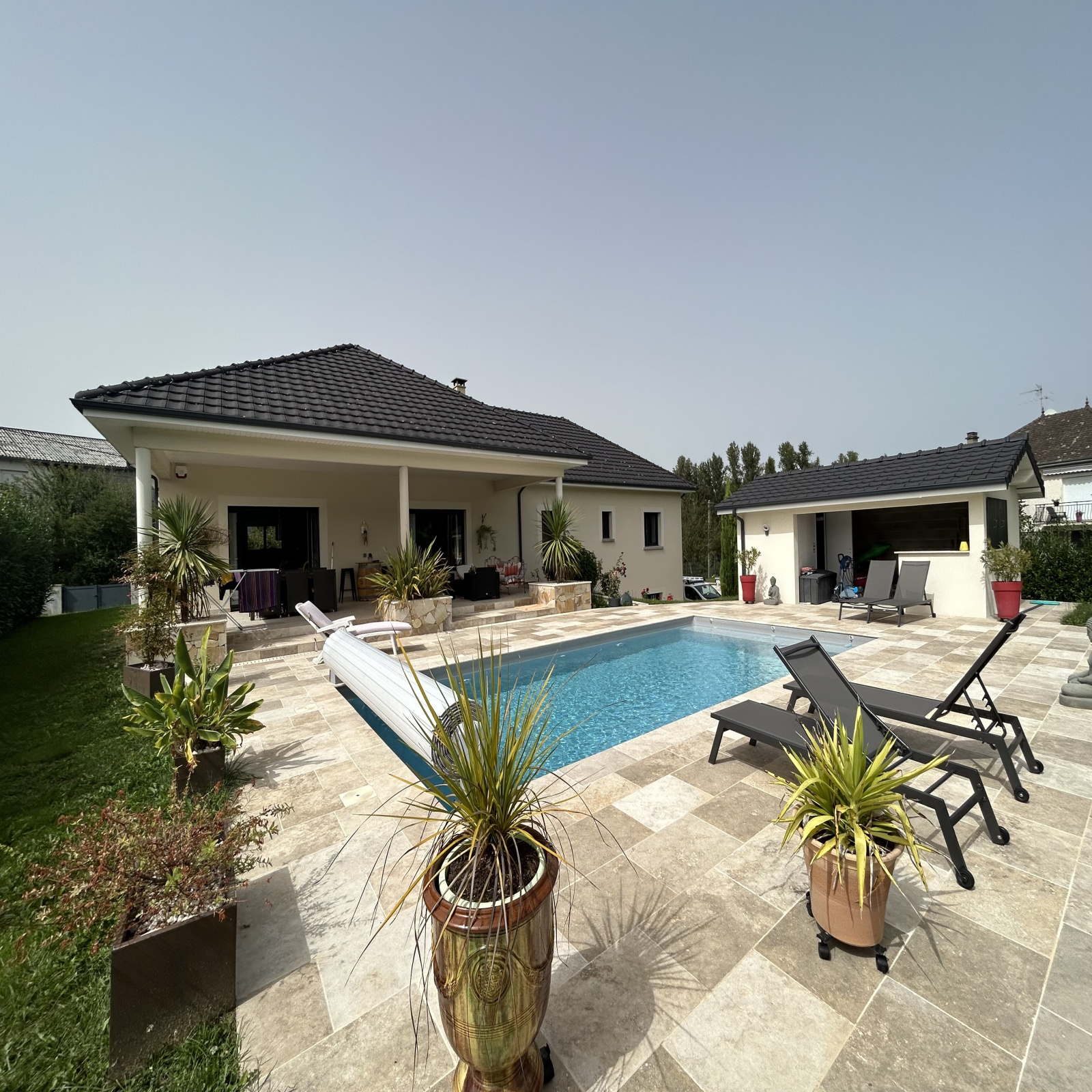 EXCLUSIVITÉ IMMODU19.FR / Maison de 2010, proche du bourg, composée de plain pied d'un vaste séjour avec cuisine ouverte donnant accès sur une grande terrasse couverte avec piscine et pool house, côté nuit on retrouve une suite parentale avec sa salle d'eau et son dressing, 3 chambres, une salle d'eau et un wc.