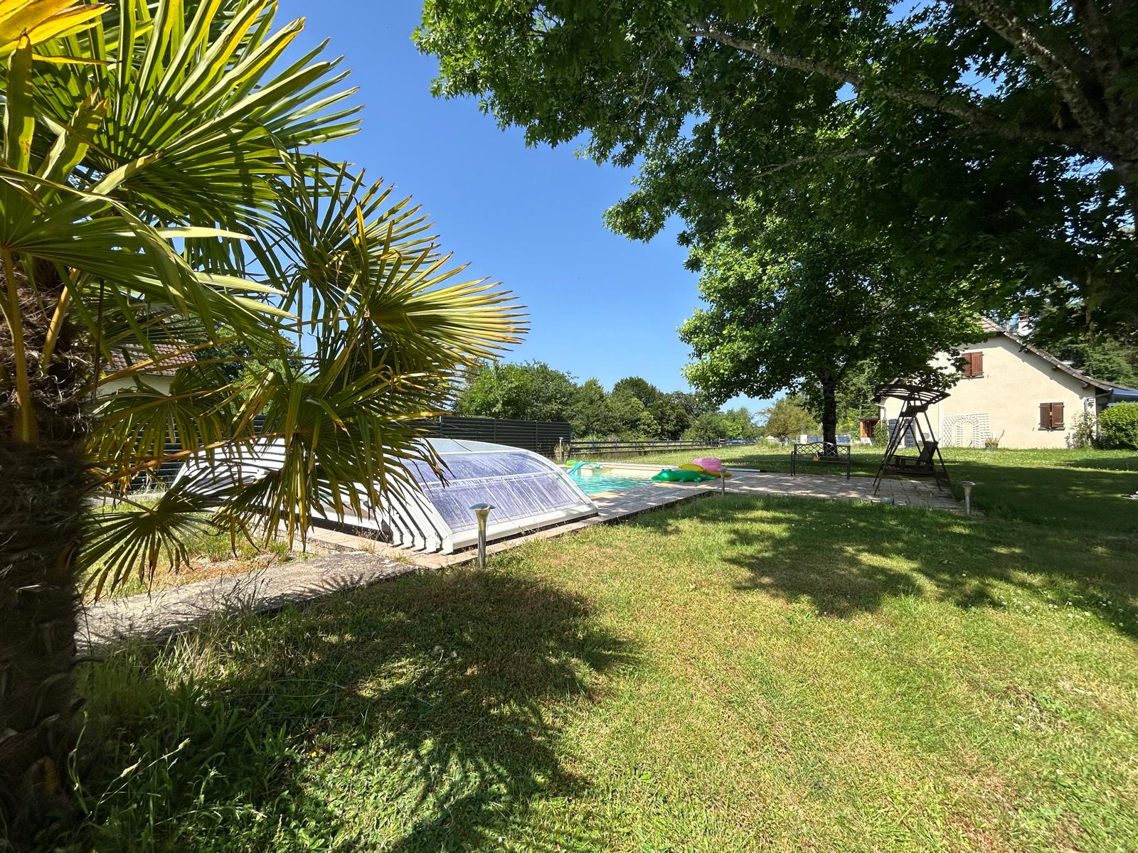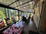 Le tout sur un terrain d'environ 2110 m² avec une cour goudronnée, un portail électrique, un car port équipé en électricité, une piscine 4*8 avec pompe à sable, un liner neuf et un dôme. Également sept panneaux photovoltaïques complètent ce bien.