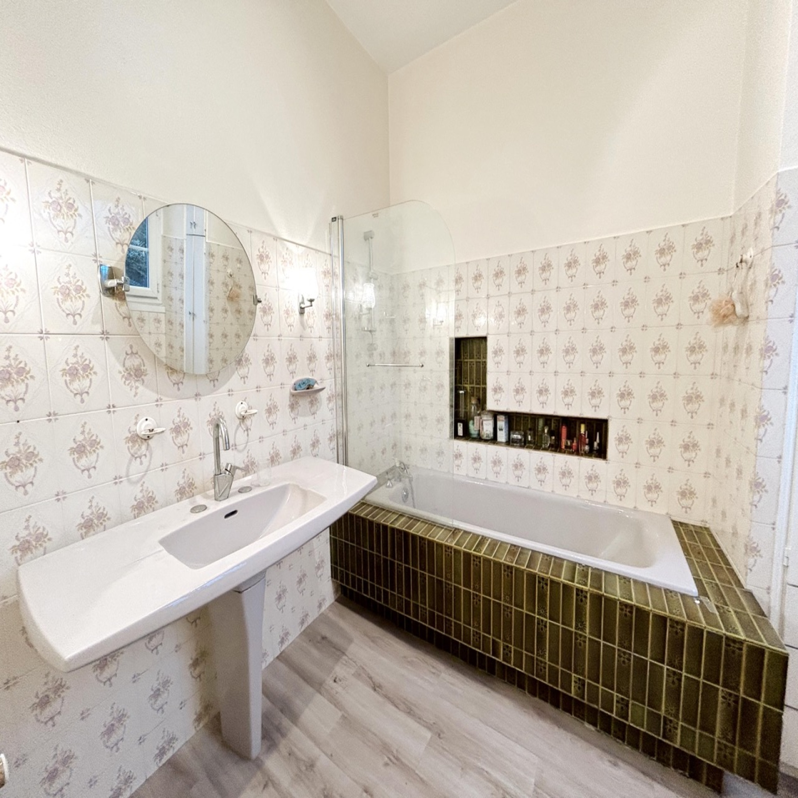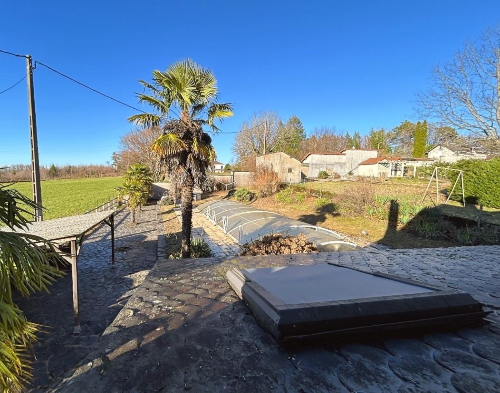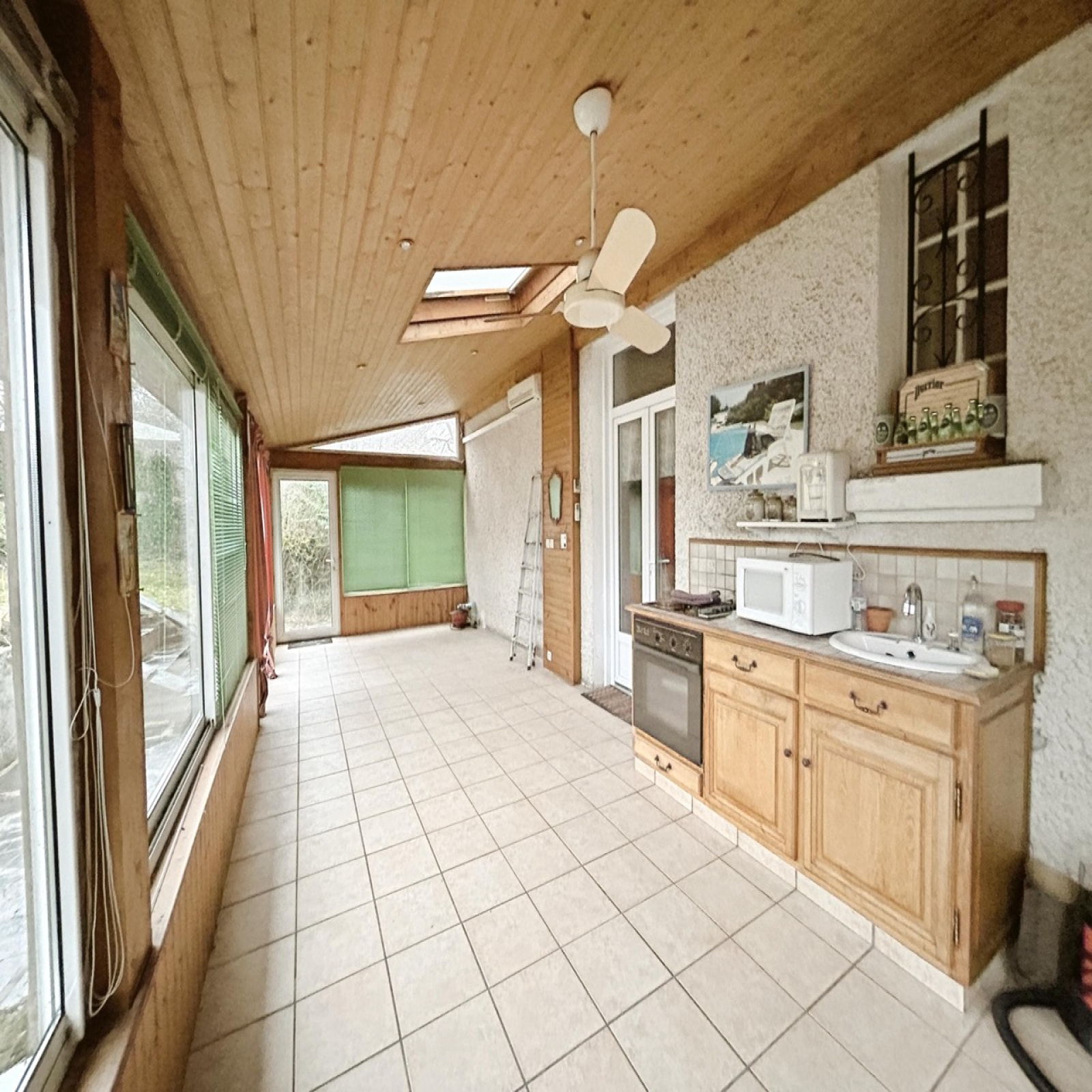 Elle est composée en rez-de-jardin d'une entrée, un séjour, une cuisine donnant sur une véranda avec accès au jardin arboré et à une picsine couverte, une chambre avec salle de bain et un WC.
