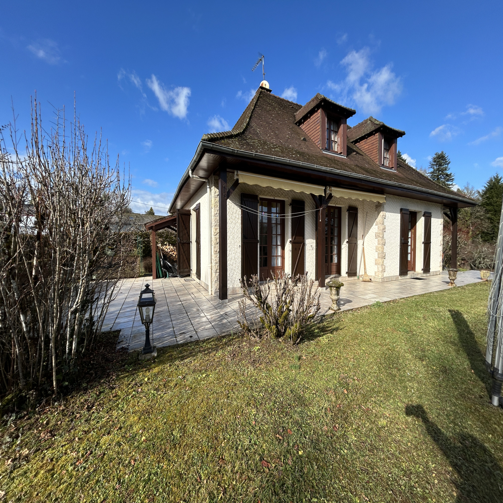 EXCLUSIVITÉ IMMODU19.FR / Maison d'habitation d'environ 150 m², elle comprend une entrée, une cuisine aménagée et équipée, un séjour de plus de 40 m² avec accès terrasse, deux chambres, une salle d'eau et un wc. À l'étage, un dégagement dessert deux chambres avec placard, une salle d'eau avec wc. Au sous-sol complet, un garage, une cave et un atelier.